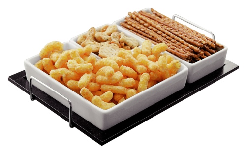 Sada servírovacích misiek, drevená tácka, papierová krabička, porcelán