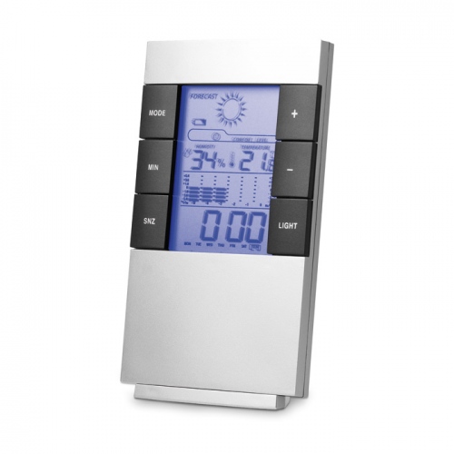 Multifunkčná meteostanica, strieborná, teplotný displej C/F, vlhkomer, kalendár, alarm