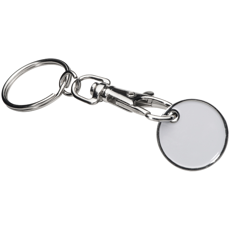 Kľúčenka s karabínkou a s odnímateľným žetónom na nákupné vozíky. Mince majú na jednej strane bielu farbu, čo znamená ideálne miesto pre Vaše logo. Ako potlač odporúčame gravírovanie.