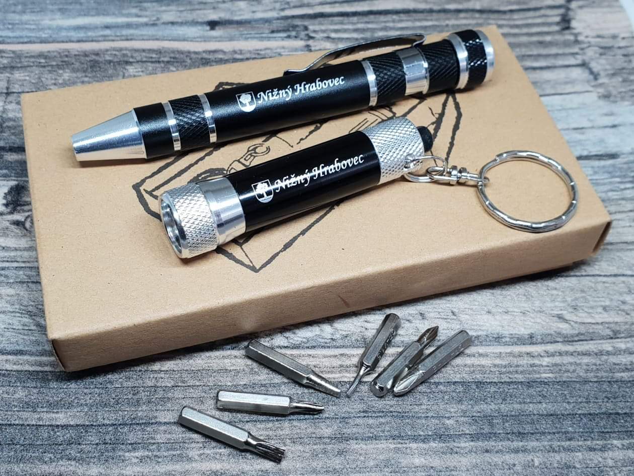 - Univerzálny šrubovák a baterka s logom obce