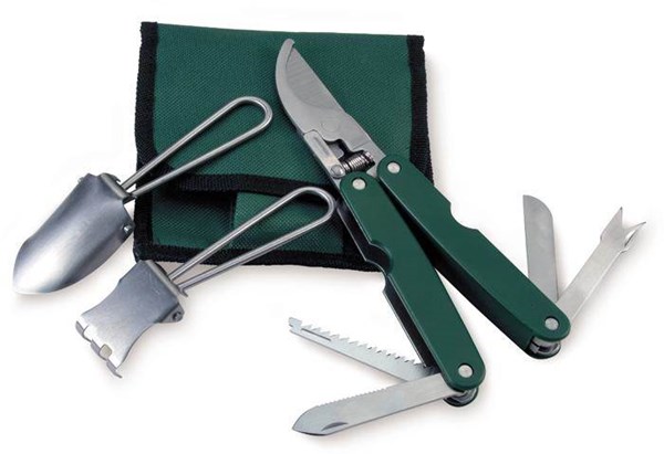 Sada náradia pre záhradkárov obsahuje lopatku na sadenie a hrabličky s kovovými držadlami a multifunkčné kovové nožnice na konáre. Všetko je uložené v textilnom puzdre s uzatváraním na suchý zips. Pri objednávke tohto tovaru s potlačou láskavo rátajte aj s nákladmi na vybalenie a zabalenie individuálne baleného tovaru, ktoré účtujeme cca € 0,09/ks, ak nejde o komplikovanú manipuláciu s obalmi alebo tovarom